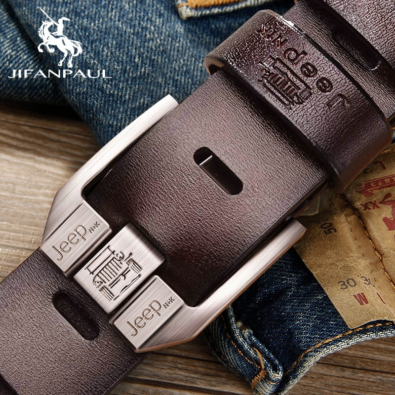 JIFANPAUL Men's genuine leather luxury brand belt high quality alloy pin buckle men's business retro youth with jeans new belt